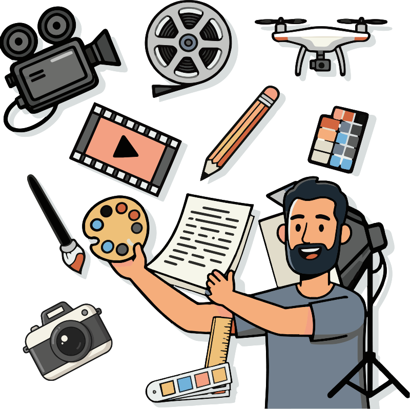 Hago de todo lo que tenga botones, píxeles o un timeline: diseño gráfico, vídeos, branding, edición, motion, color, fotos , tours virtuales (fotos 360), catálogos 3D… y básicamente cualquier cosa que haga que tu marca se vea bonita y profesional.